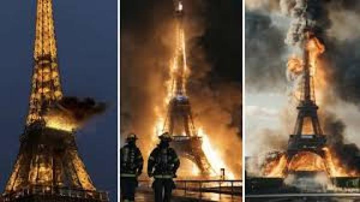 Op internet doken deze foto's op van de Eiffeltoren die in vuur en vlam stond. Ze zagen er heel echt uit. Maar... het is helemaal niet gebeurd.